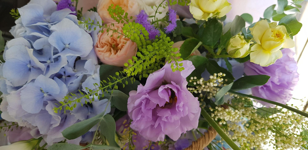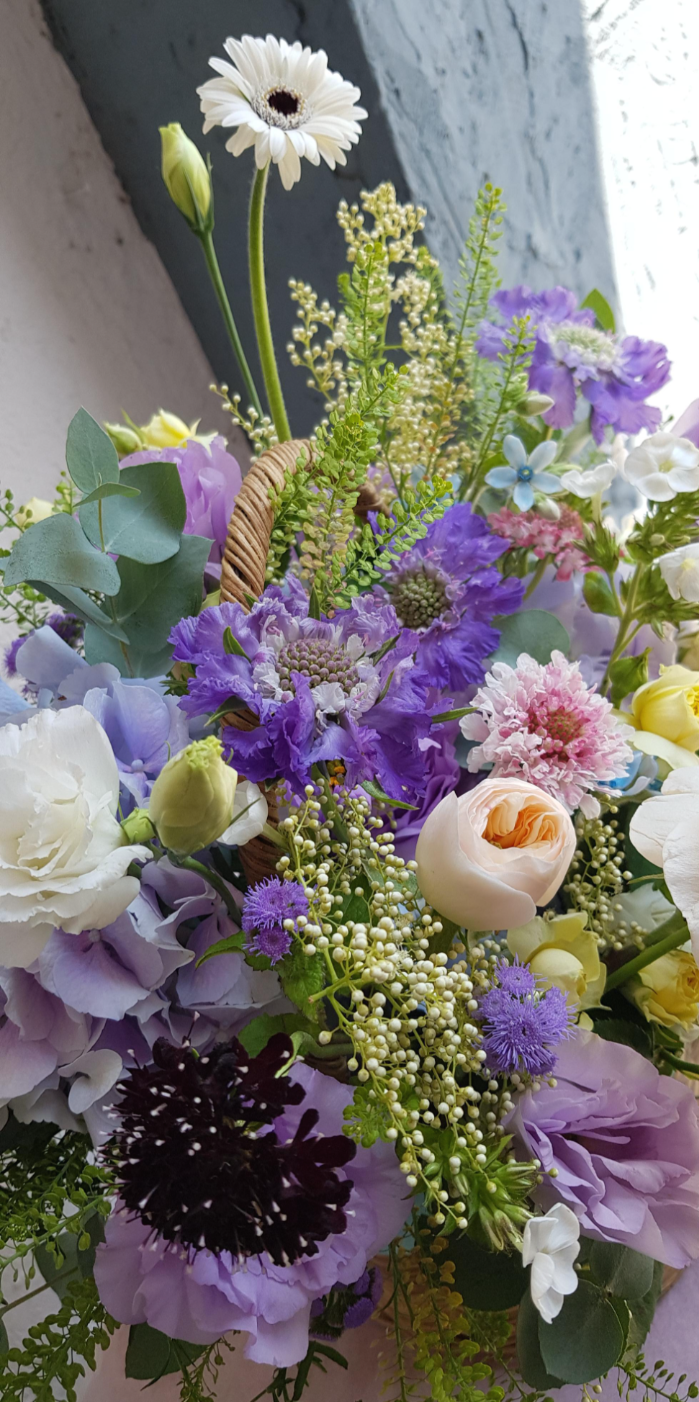 꽃바구니 속에서 특별히 연보라를 좋아해서 새삼 느낌으로 작업을 해보니 완성한 꽃바구니를 봐도