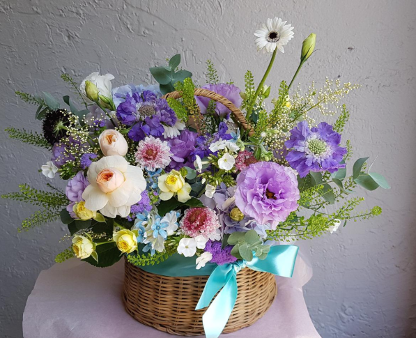 꽃바구니 속에서 특별히 연보라를 좋아해서 새삼 느낌으로 작업을 해보니 완성한 꽃바구니를 봐도