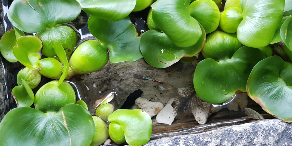 부레옥잠 수경과 함께 구피 키우기 열대어들에게는 아주 좋은 환경으로 구피들도 자기들의 안전한