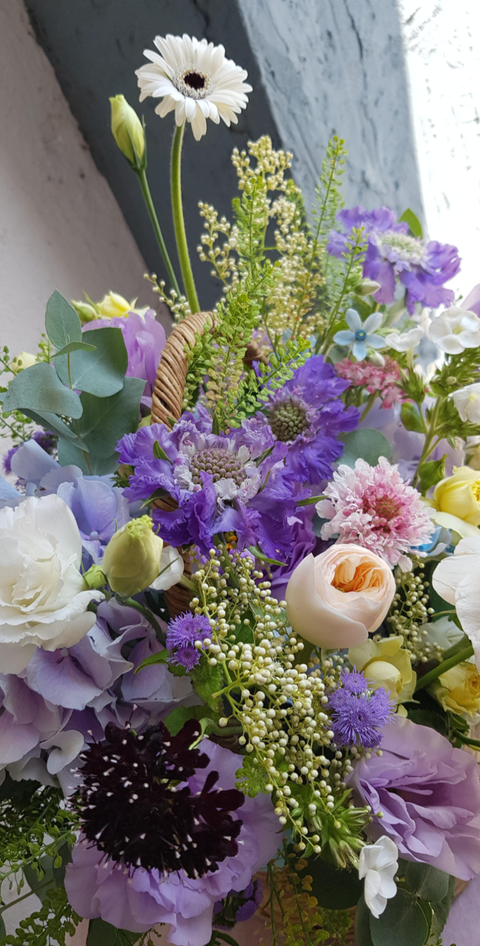 보라로 오늘은 포인트를 잡어 보라꽃바구니 색 조합을 해보았습니다.