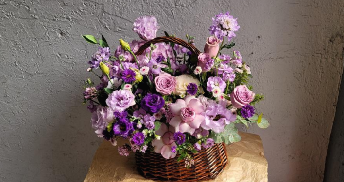 보라로 오늘은 포인트를 잡어 보라꽃바구니 색 조합을 해보았습니다.