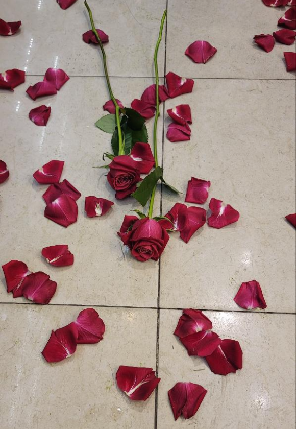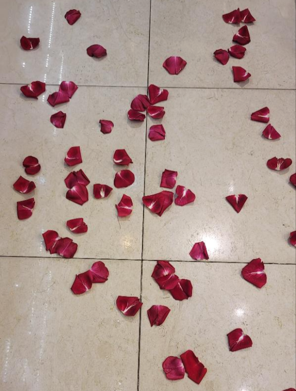 샹그리나 장미와 함께 뿌려진 장미꽃잎을 보시면 옛 추억에 생각이 날 것 같아요.