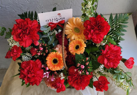 젤루야가 부모님께 드렸던 5월 어버이날 꽃바구니 레드 카네이션으로 해보았습니다.