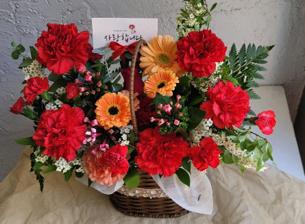 전체적인 꽃의 조화가 맞아 부모님을 찾아 뵈서 감사의 마음과 사랑을 카네이션 꽃바구니에