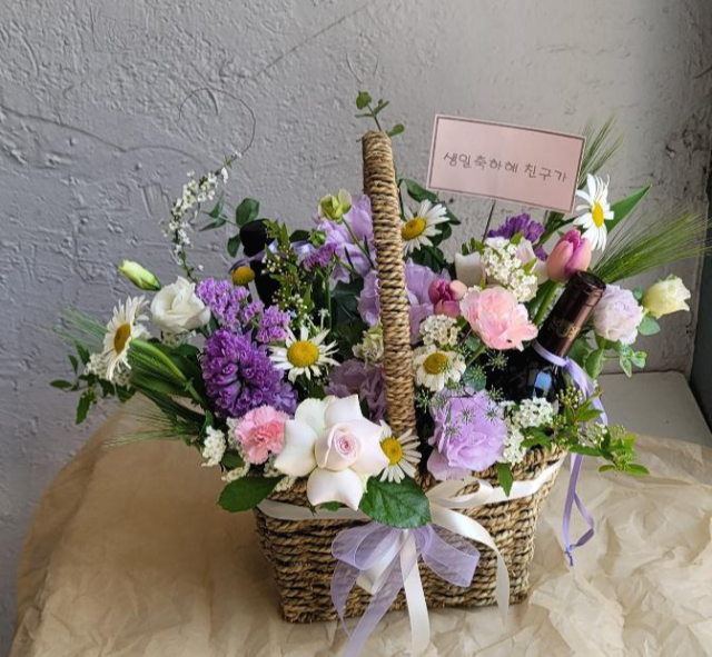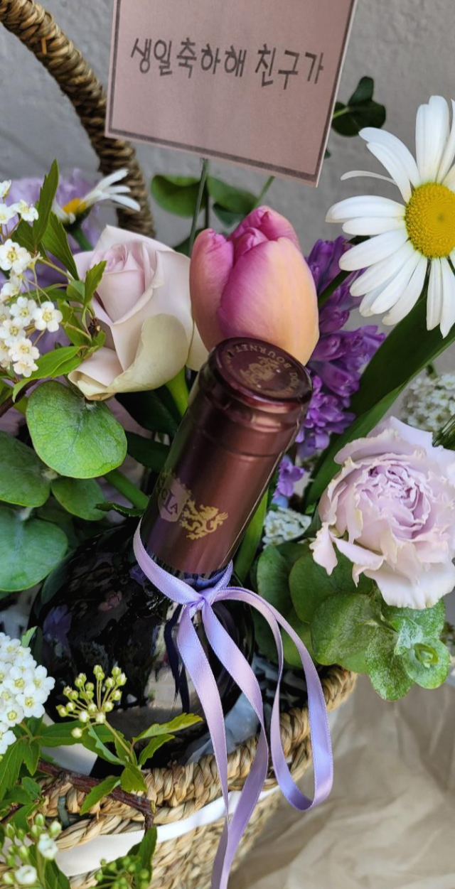 오늘은 젤루야가 친구에게 주는 선물 와인 꽃바구니를 준비해보았습니다.