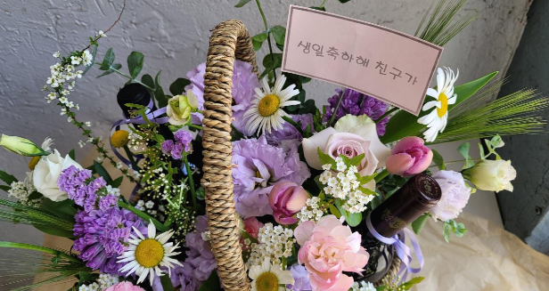 오늘은 젤루야가 친구에게 주는 선물 와인 꽃바구니를 준비해보았습니다.