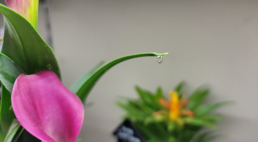 아침에 일어나서 카라를 보니 아니 카라에 물방울이 한 방울 떨어 지려는 찰나