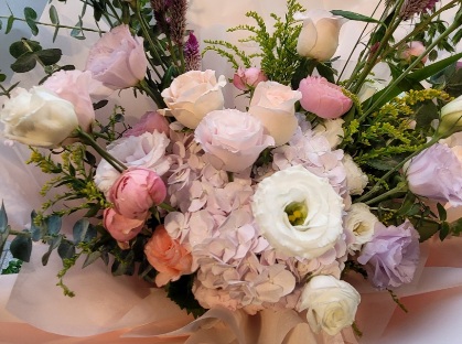 시각적인 면에서 시원함을 느끼게 하기 때문에 연하고 파스텔 쪽의 꽃다발이 시원시원하게