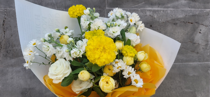 메리골드 스토크 계란 소국 작은 노랑 미니장미 장미처럼 보이는 흰꽃 로즈리 시안 셔스