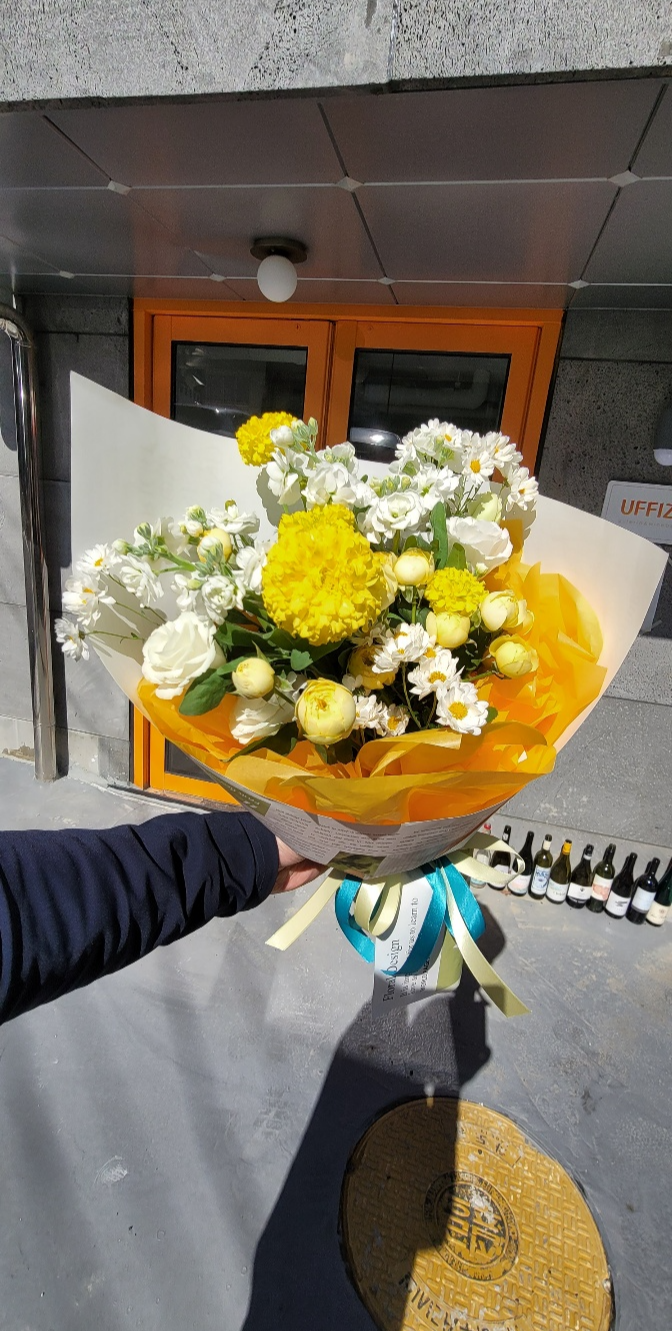 오늘 친구는 꽃다발을 보고 너무 좋아하는 모습