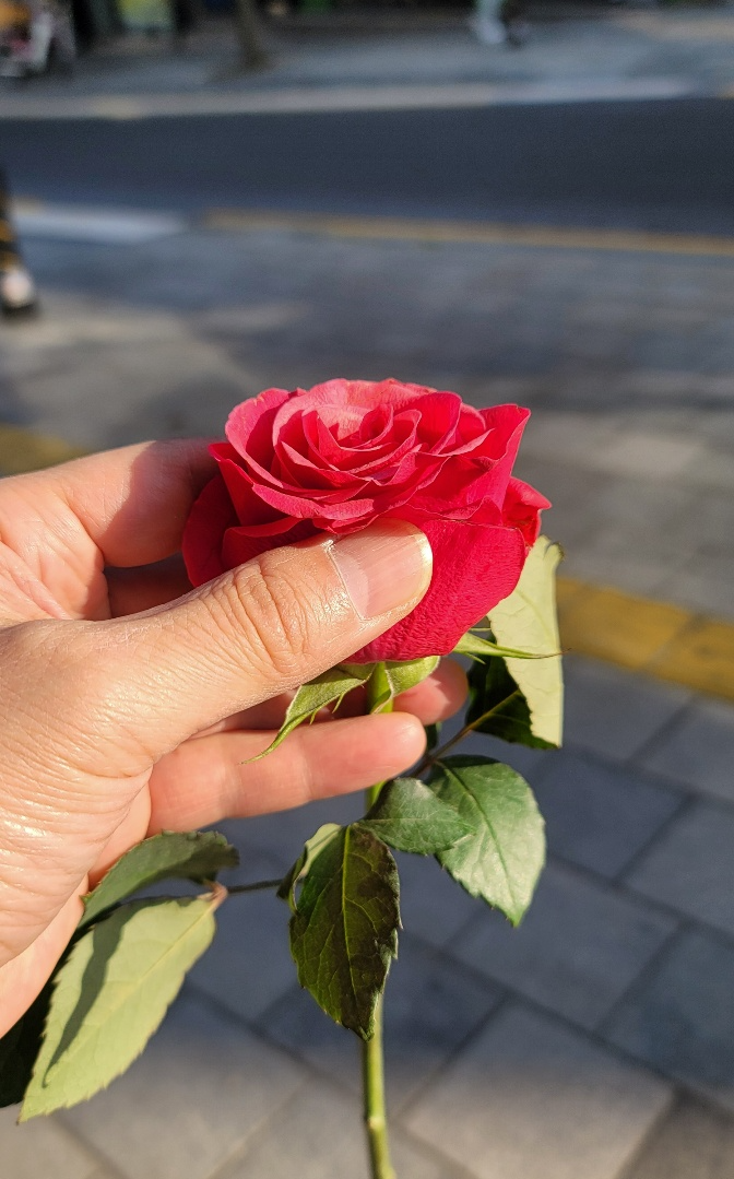 3. 손으로 만져보면 알 수 있는 방법은 일단 예를 들어 장미로 하겠습니다.( 일단 손으로 꽃을 가로로 눌러보았을 때