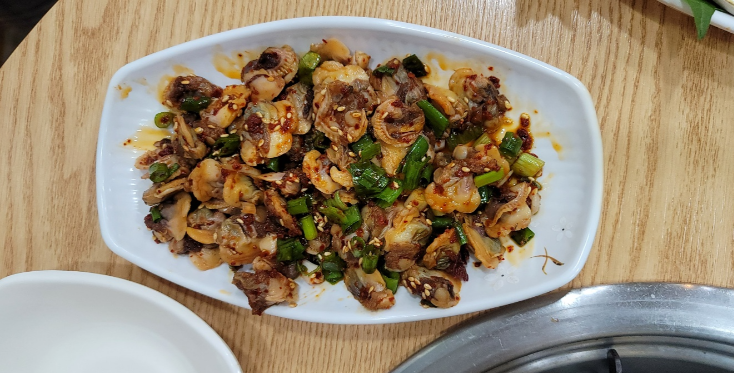 일단 섞어탕은 끊어야 하기 때문에 먼저 꼬막무침을 시식하기로 했습니다.