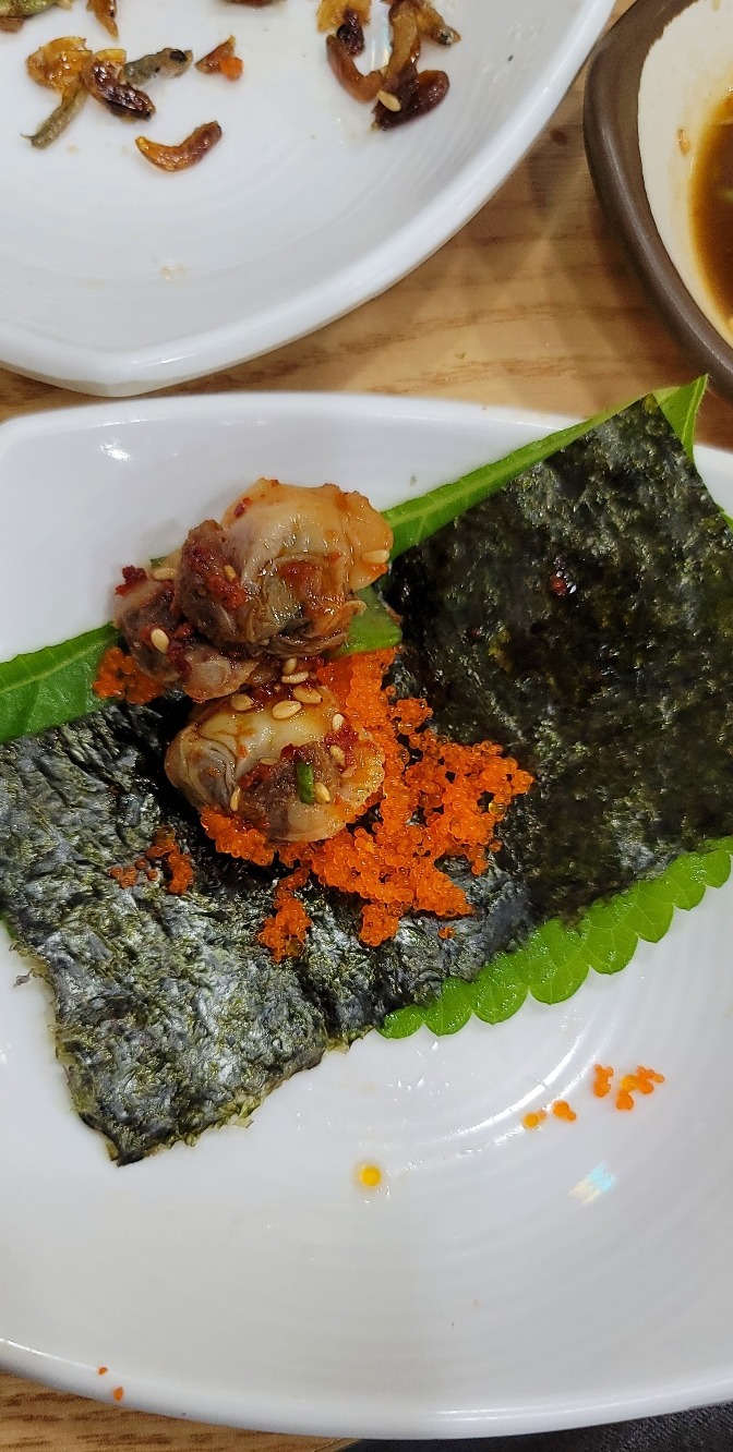 바로 김과 함께 주신 알을 같이 한점 꼬막과 함께 싸서 먹어 보면 맛이 배가 된다고 하여