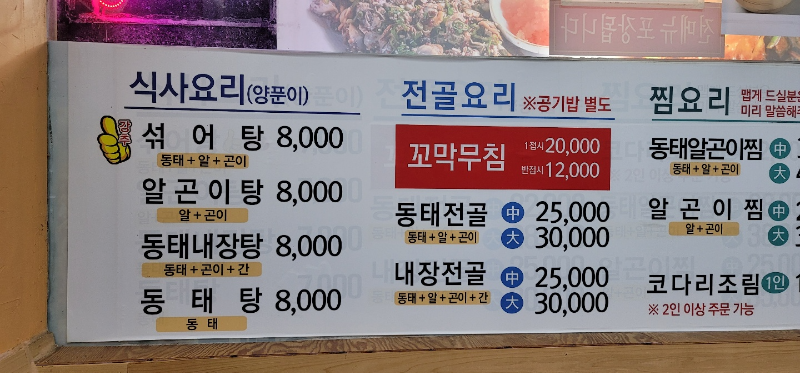 동태탕을 먹을려고 하였으나 도착해서 꼬막무침 한 접시에 시원한 맥주 한잔 하면 좋겠다.