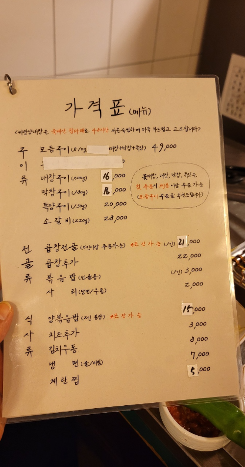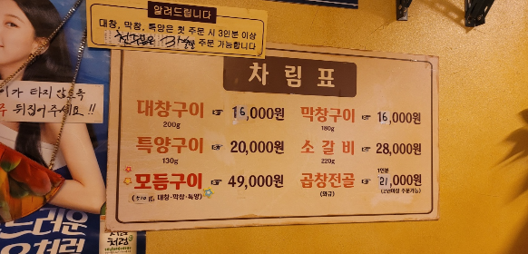 직원분이 안내해준 자리에 앉아 처음 방문이라 일단 모르면 모둠 양대창이지 하고 직원분에게