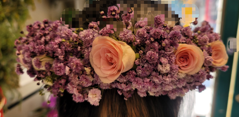 머리에 꽃화관을 쓰면 꽃다발 꽃바구니 보다는