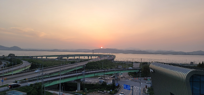 오늘은 젤루야가 일산 자유로 근처 어느 카페에서 자유로를 바라보면서 석양이 지는 모습을