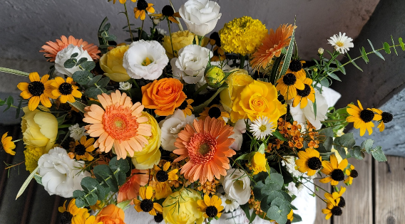 노랑, 주황, 흰색의 꽃의 궁합으로는 당연히 좋은 것 같네요.