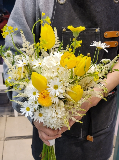 노란 꽃은 밝고 활기찬 색상으로, 기쁨과 축하를 상징합니다. 졸업이라는 중요한 순간을 기념하며 졸업생에게 밝은 미래가 기다리고 있음을 표현합니다. 노란 꽃다발은 졸업식의 축제 분위기를 한층 끌어올리고, 졸업생의 성취를 인정하는 상징적인 선물이 됩니다.