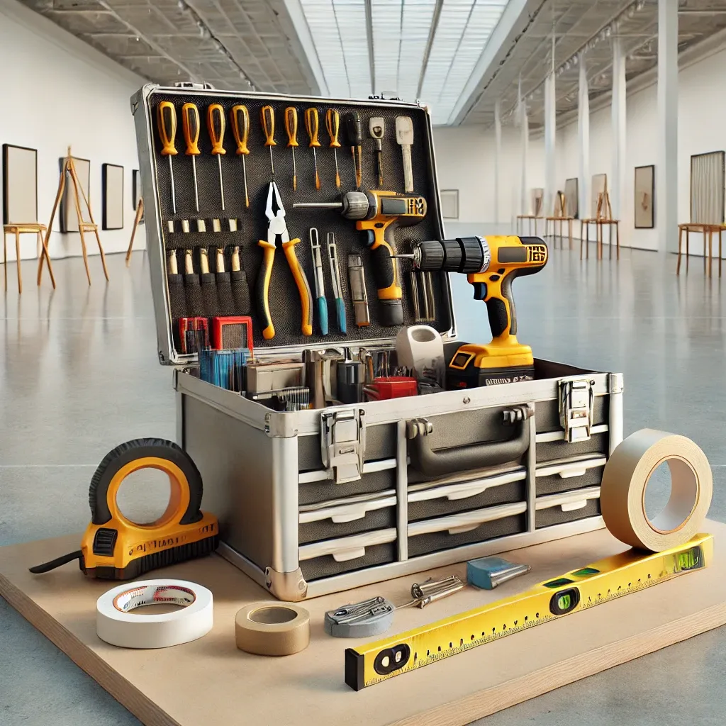 • 작품을 안전하게 설치하고 전시 공간을 구성하는 데 필요한 공구, 케이블, 드릴, 테이프 등이 필수적입니다.