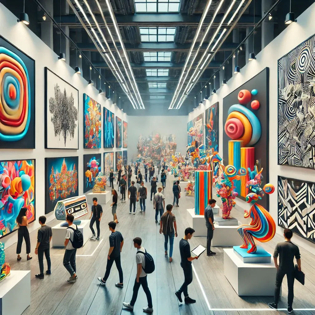 회화, 조각, 설치 미술 등 다양한 장르가 혼합됩니다.