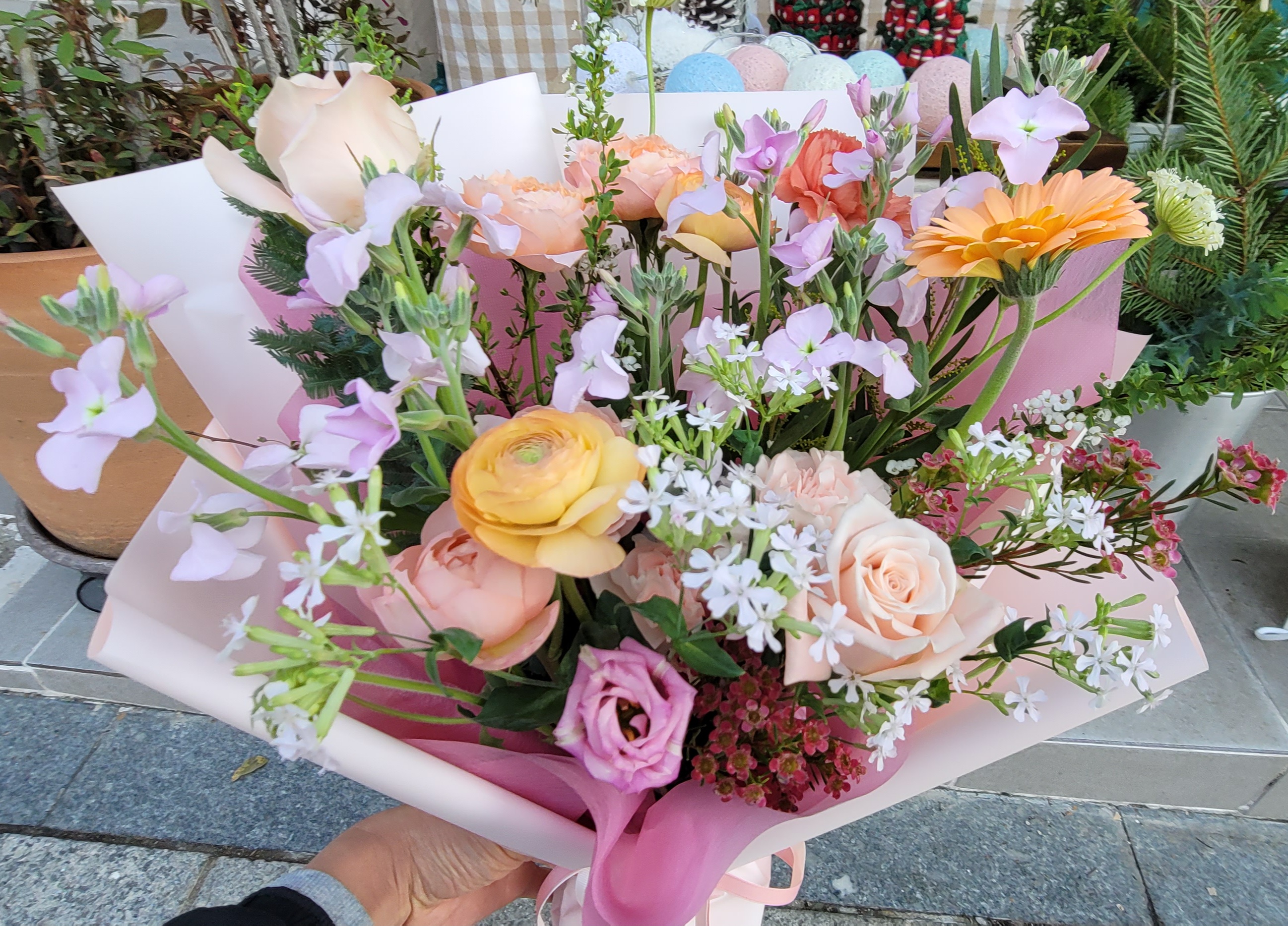 축하 꽃다발과 선물을 고르며 특별한 날을 준비했습니다.