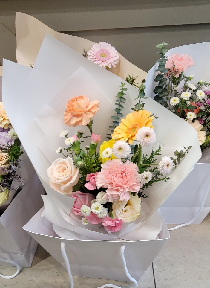 꽃다발을 받은 건 정말 오랜만이라 기쁨도 두 배였습니다. 마지막으로 꽃다발을 받은 기억은 가물가물하지만, 오늘 받은 꽃은 특별히 더 아름답게 느껴졌습니다.