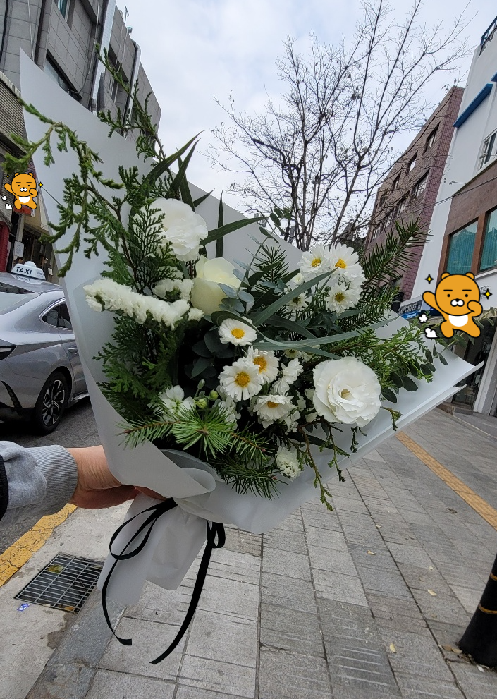 꽃다발에는 화려한 꽃들로 친구의 아름다운 성악 실력과 노력을 상징하고, 선물에는 친구의 미래를 위한 응원의 의미를 담았습니다. 저의 작은 준비가 친구에게 큰 힘이 되었으면 좋겠습니다.