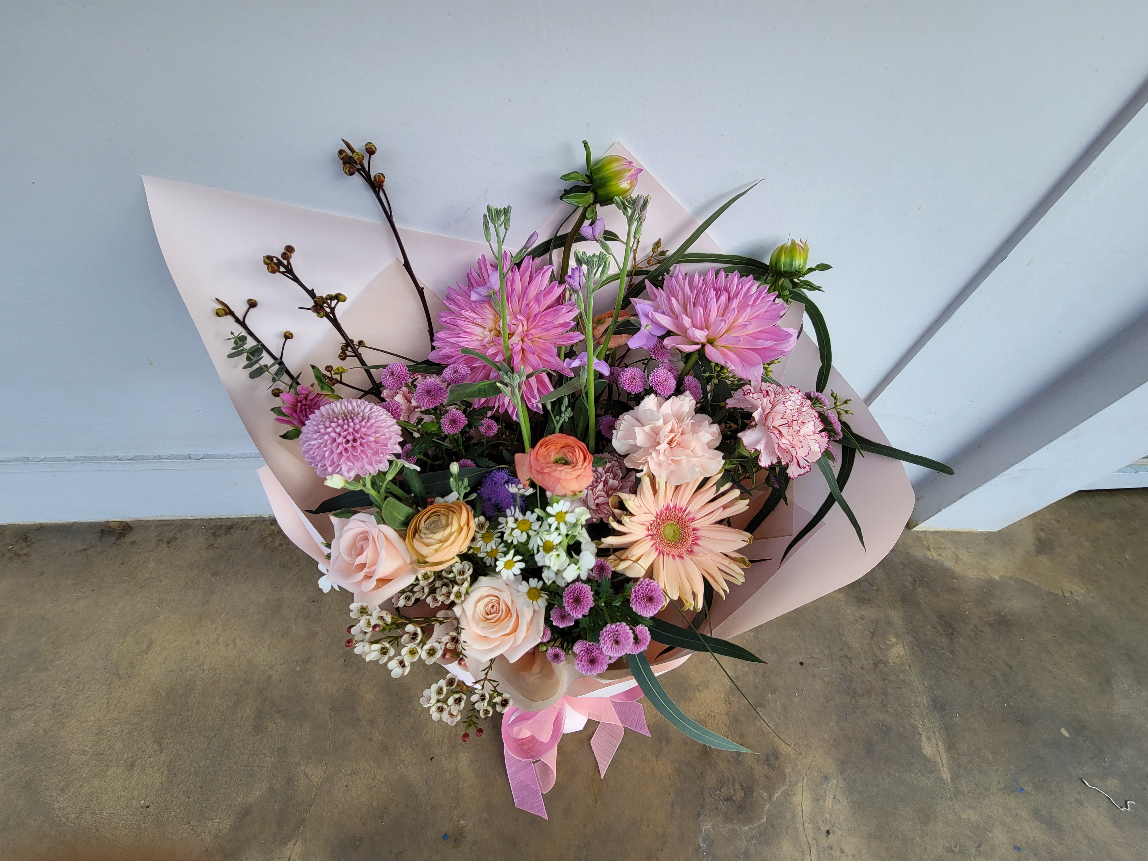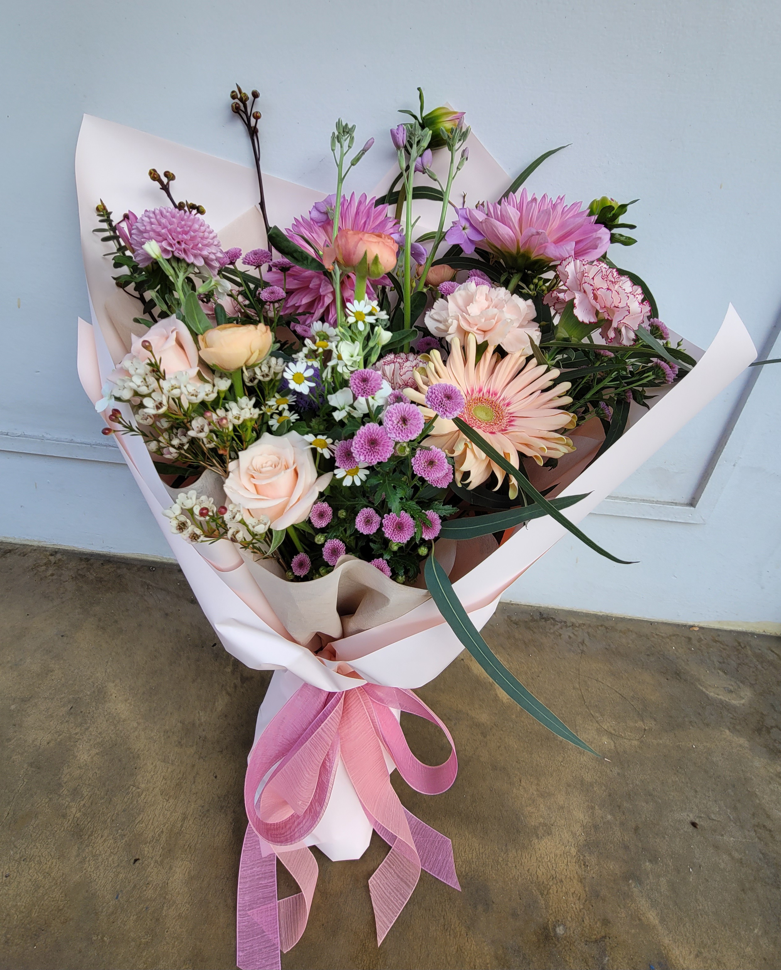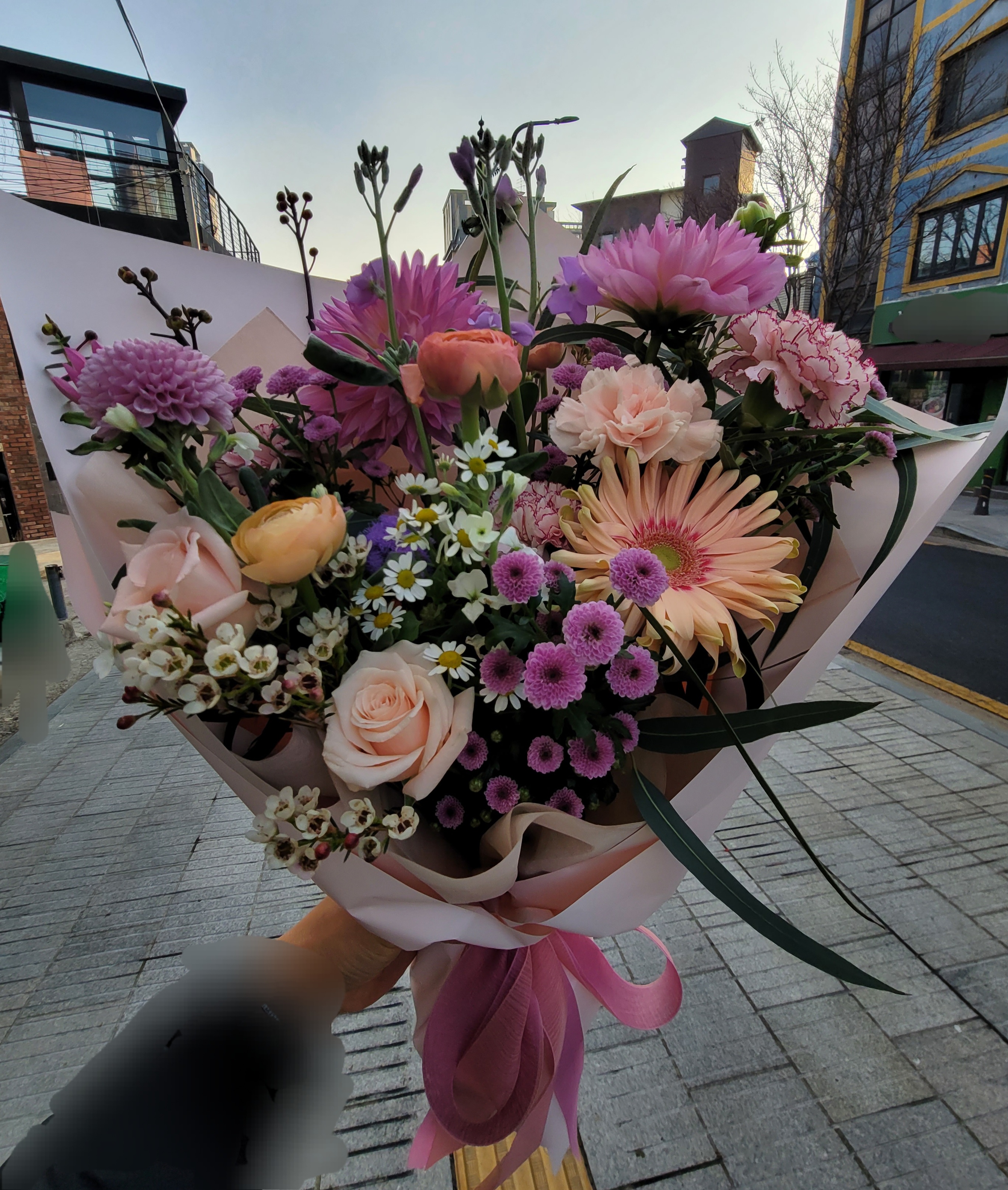 꽃다발은 새로운 시작을 향한 응원의 메시지였습니다.