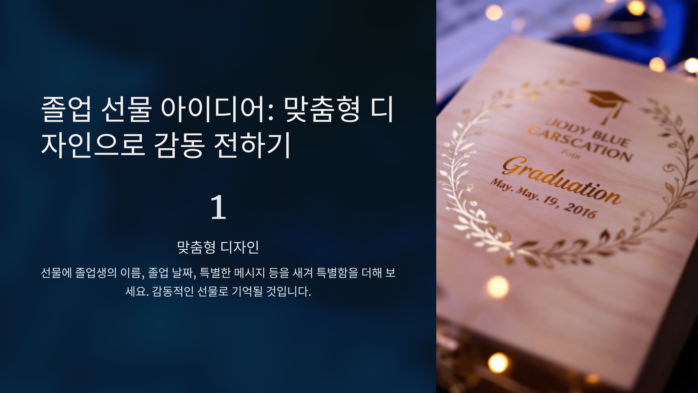 졸업식을 더욱 특별하게 만들고 싶다면, 졸업생만을 위한 맞춤형 아이템을 준비해보세요. 이러한 아이템은 졸업생에게 감동을 줄 뿐만 아니라 독창적이고 기억에 남는 졸업식을 완성하는 데 도움을 줄 거예요.