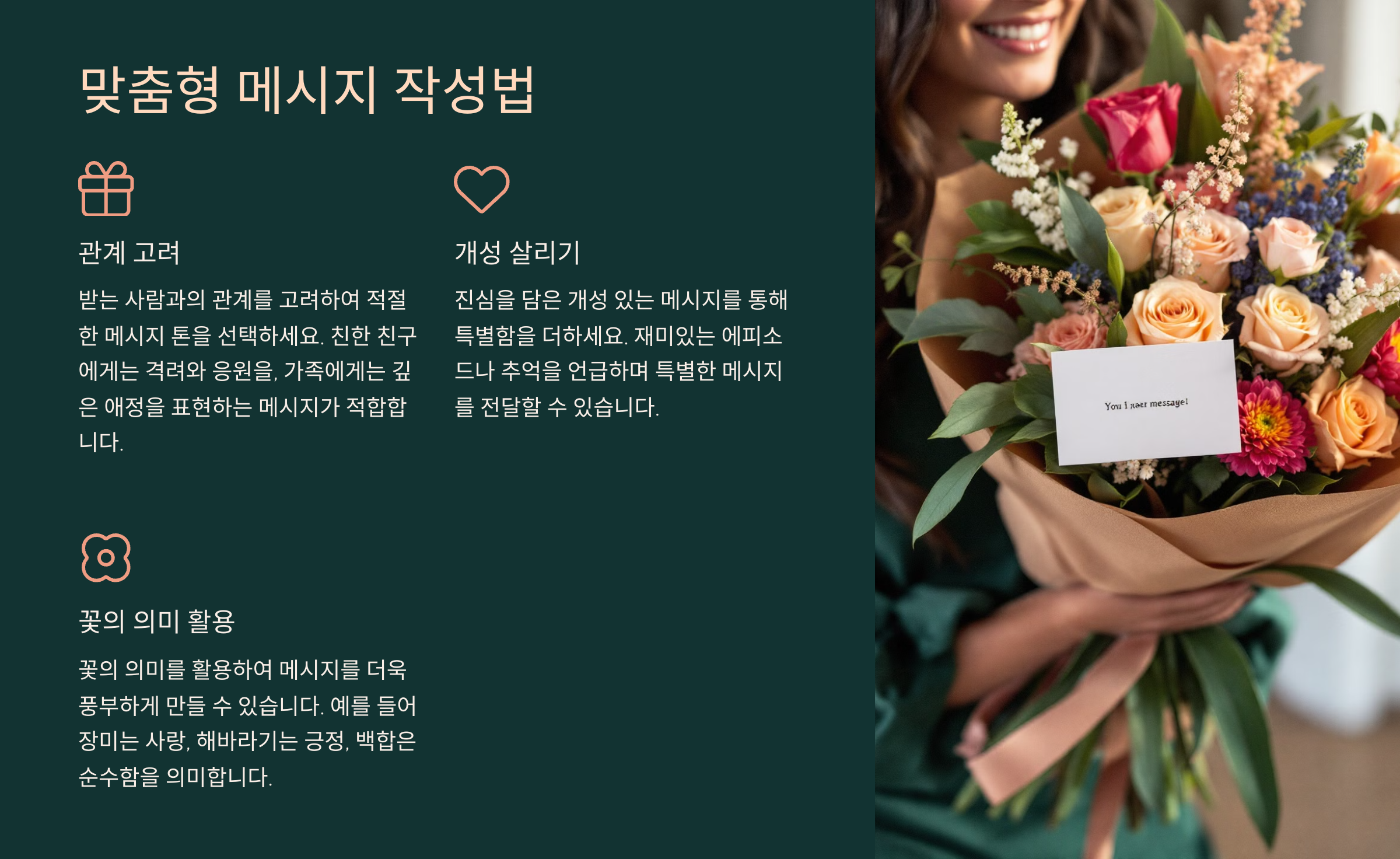 A2. 2~3문장이 적당해요. 짧지만 진심이 담긴 메시지가 더 효과적이에요.
