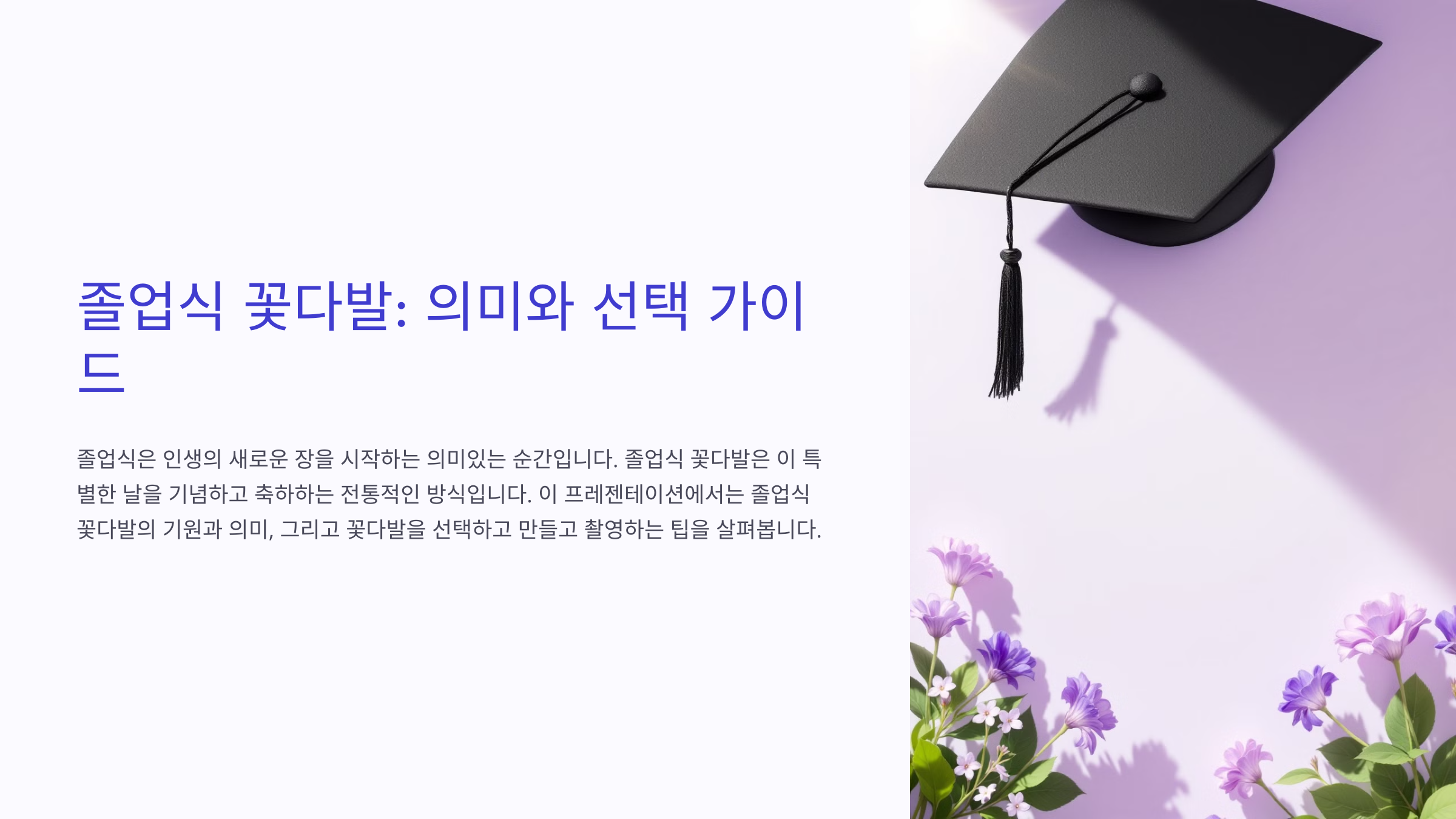 이처럼 꽃다발은 단순히 아름다움만을 제공하는 것이 아니라, 축하와 사랑, 그리고 성취에 대한 존경심을 담아 전하는 중요한 상징으로 자리 잡았답니다. 졸업식에서 꽃다발을 준비할 때, 이런 역사적 의미를 생각하면 더 특별하게 느껴질 거예요.