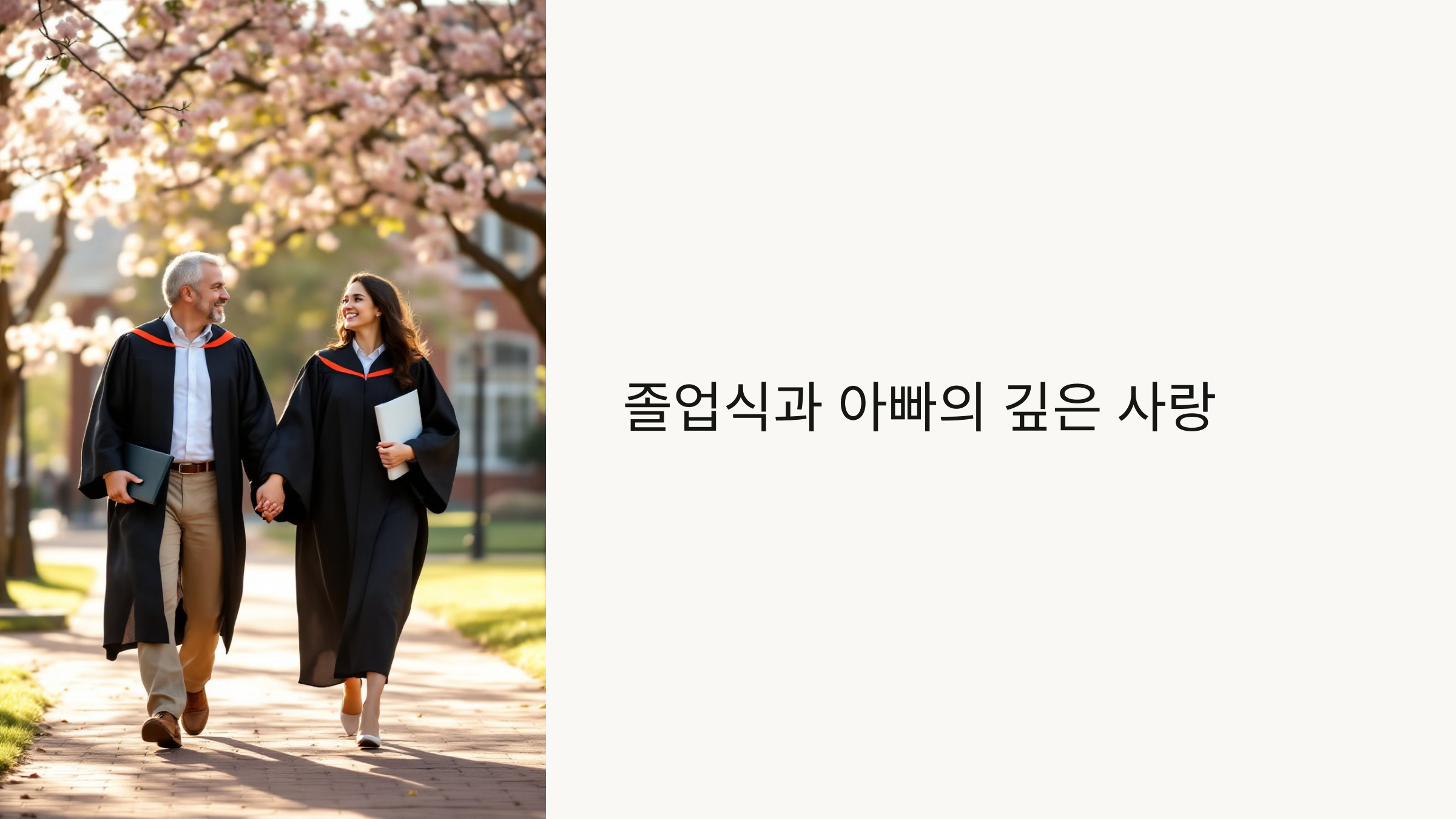 사랑은 자녀와 아빠 사이의 끈끈한 유대를 표현하는 중요한 메시지예요. 졸업식 날, 꽃다발을 건네며 눈을 맞추는 그 순간은 아빠와 자녀 사이에 사랑의 에너지가 흐르는 순간이 될 거예요.