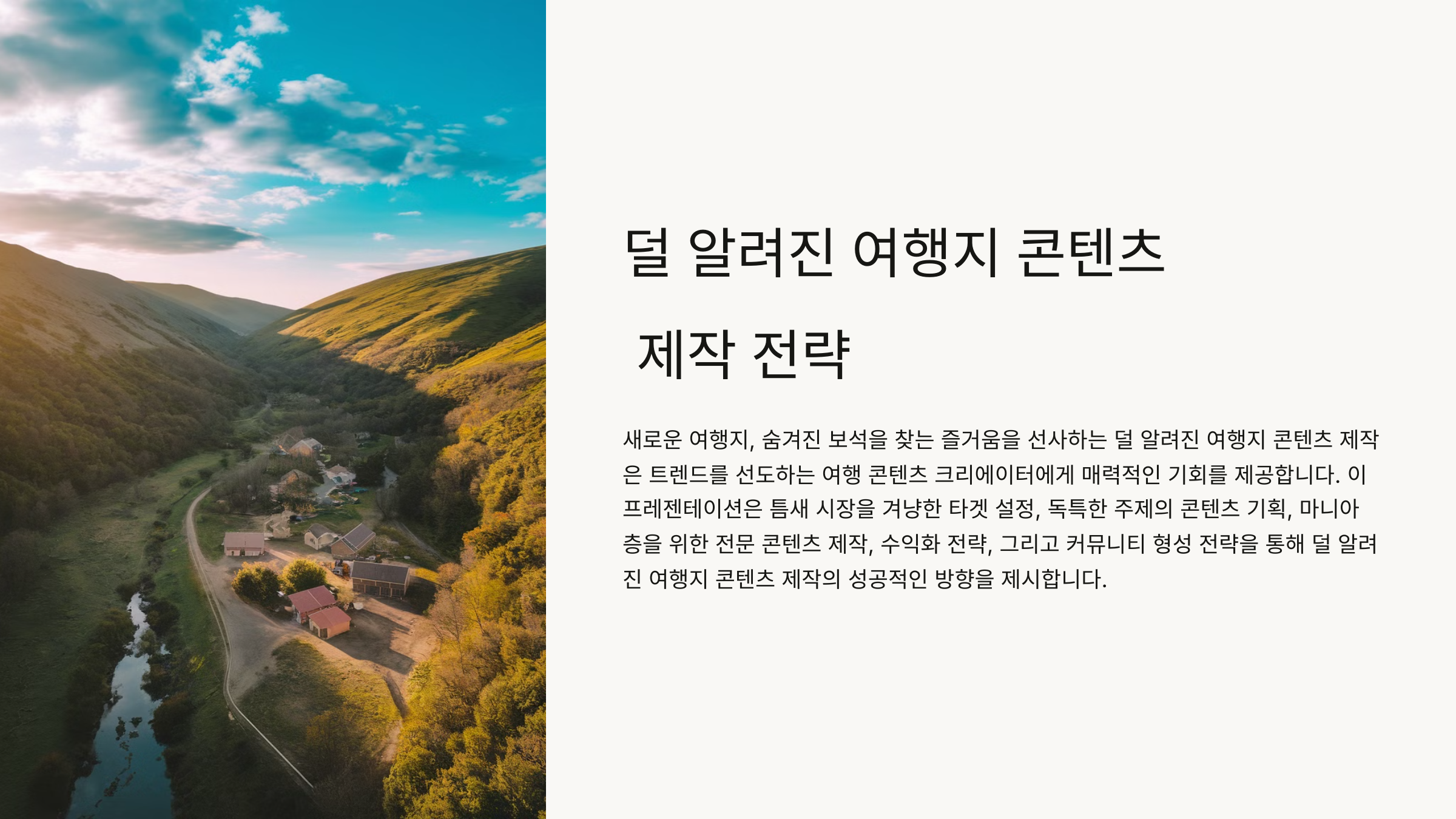 덜 알려진 여행지를 콘텐츠로 다룰 때는 지역에 대한 철저한 사전 조사가 중요해요. 구글 지도, 여행 포럼, 현지 블로그 등을 참고해 독특하고 색다른 장소를 찾아보세요. 현지인과의 인터뷰도 큰 도움이 돼요. 그들의 추천은 기존 자료에서 찾기 어려운 특별한 정보를 제공해줄 수 있어요.