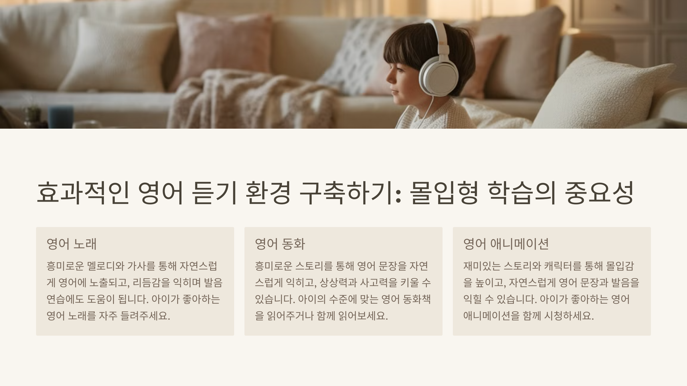 예를 들어, 배경음악처럼 영어를 틀어놓기만 하면 아이가 주의 깊게 듣지 않아요. 대신, 아이가 흥미를 느낄 수 있도록 상황과 감정을 담은 음성을 제공해야 해요. 애니메이션, 오디오북, 영어 동요 등을 활용하면 자연스럽게 영어 환경에 노출될 수 있어요.