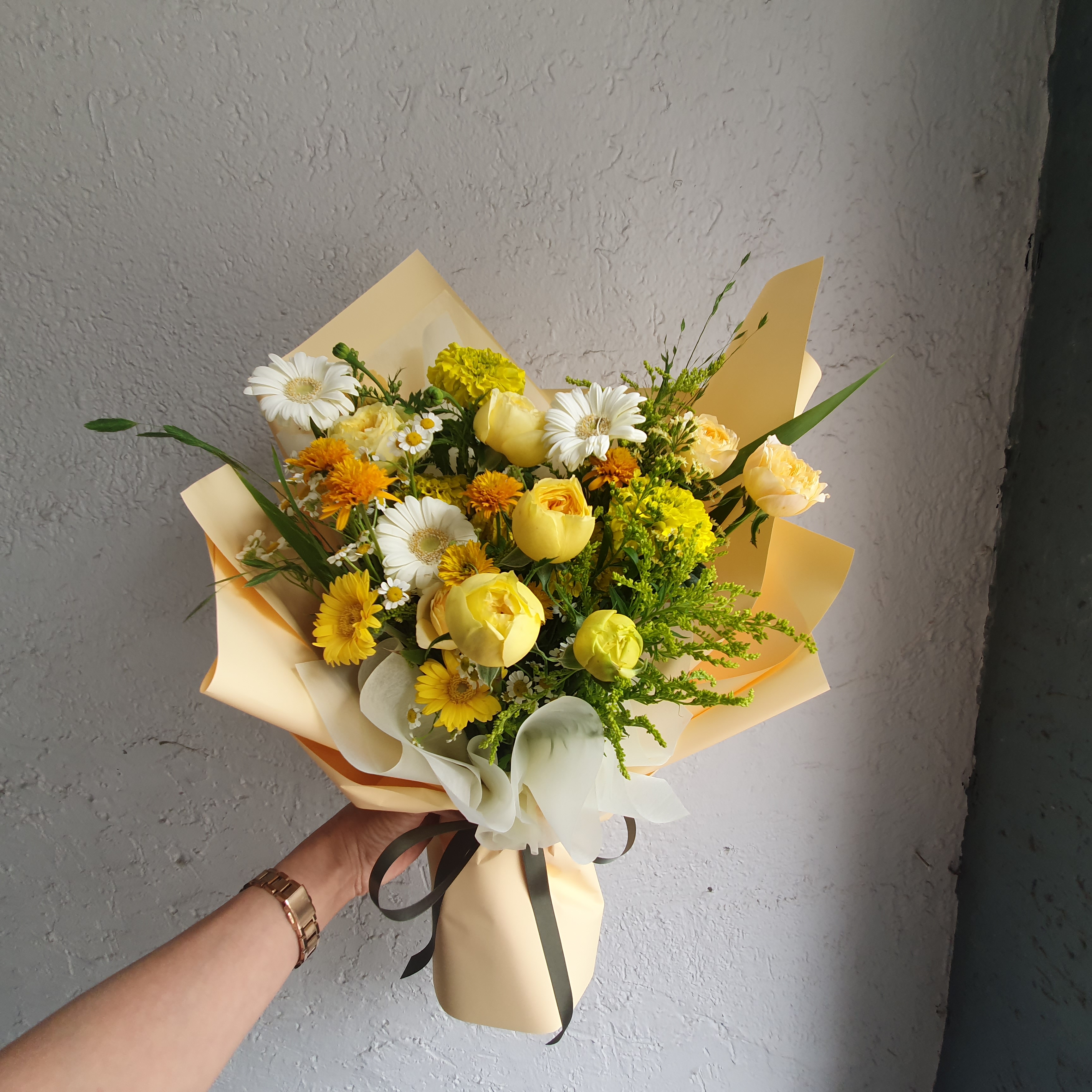 | 해바라기 + 튤립 + 유칼립투스 | 밝고 활기찬 분위기 | 졸업, 승진 축하 |