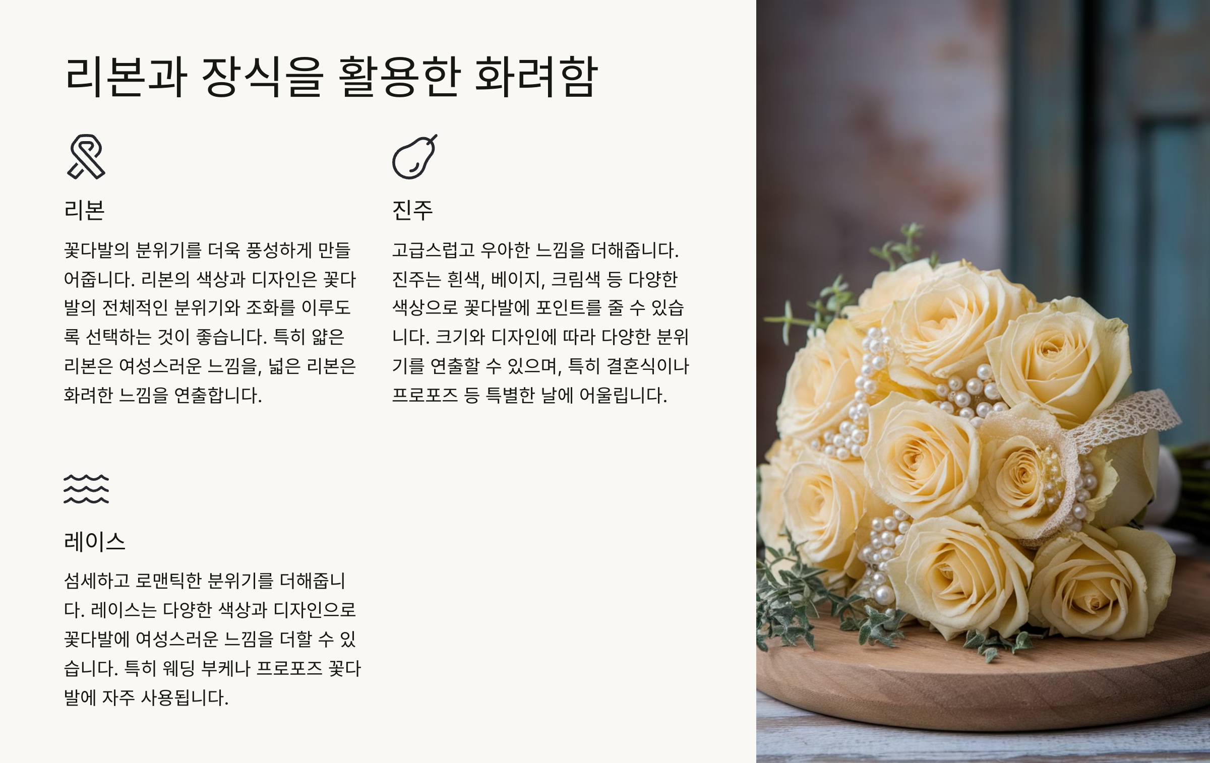 | 리본/장식 종류 | 특징 | 추천 꽃다발 스타일 |