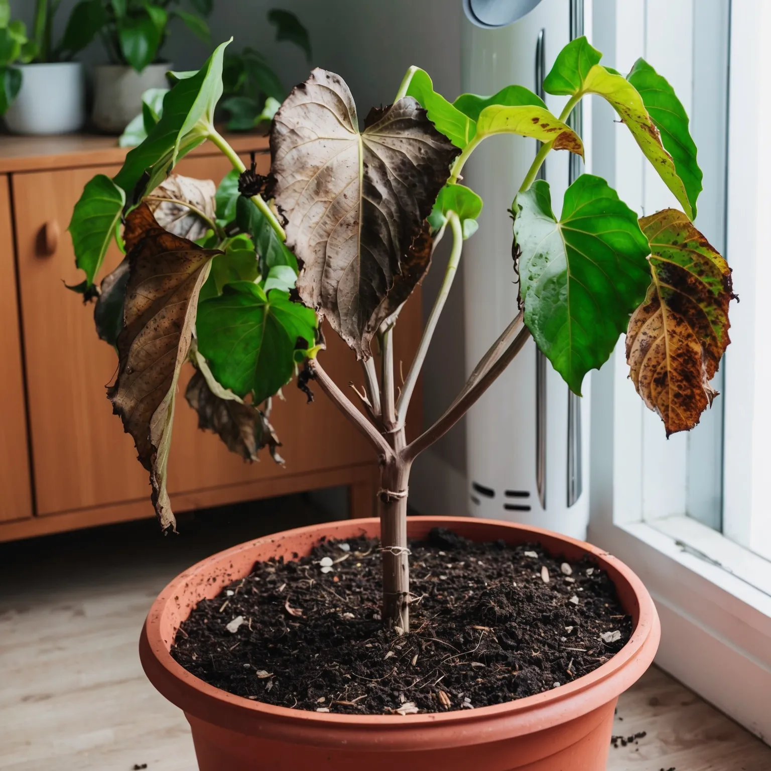 히터 바람이 지속적으로 닿으면 잎이 바싹 마르면서 끝이 갈색으로 변해요. 이는 수분 부족뿐만 아니라 온도 변화로 인해 세포가 손상되기 때문이에요. 이런 상황이 계속되면 잎 전체가 노랗게 변하며 시들어 버릴 수 있어요.