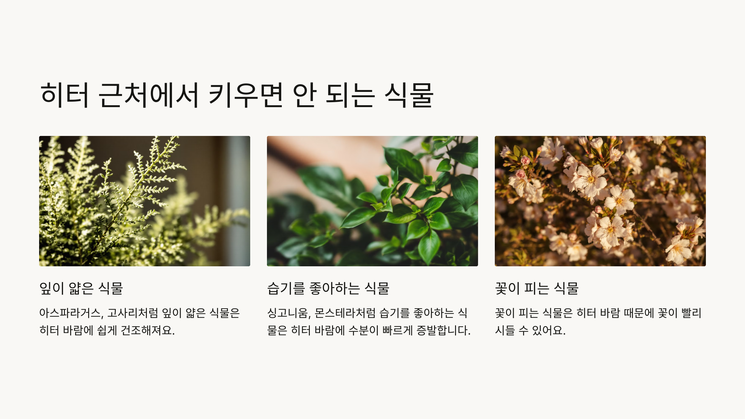 히터 사용 시 식물 배치 요령