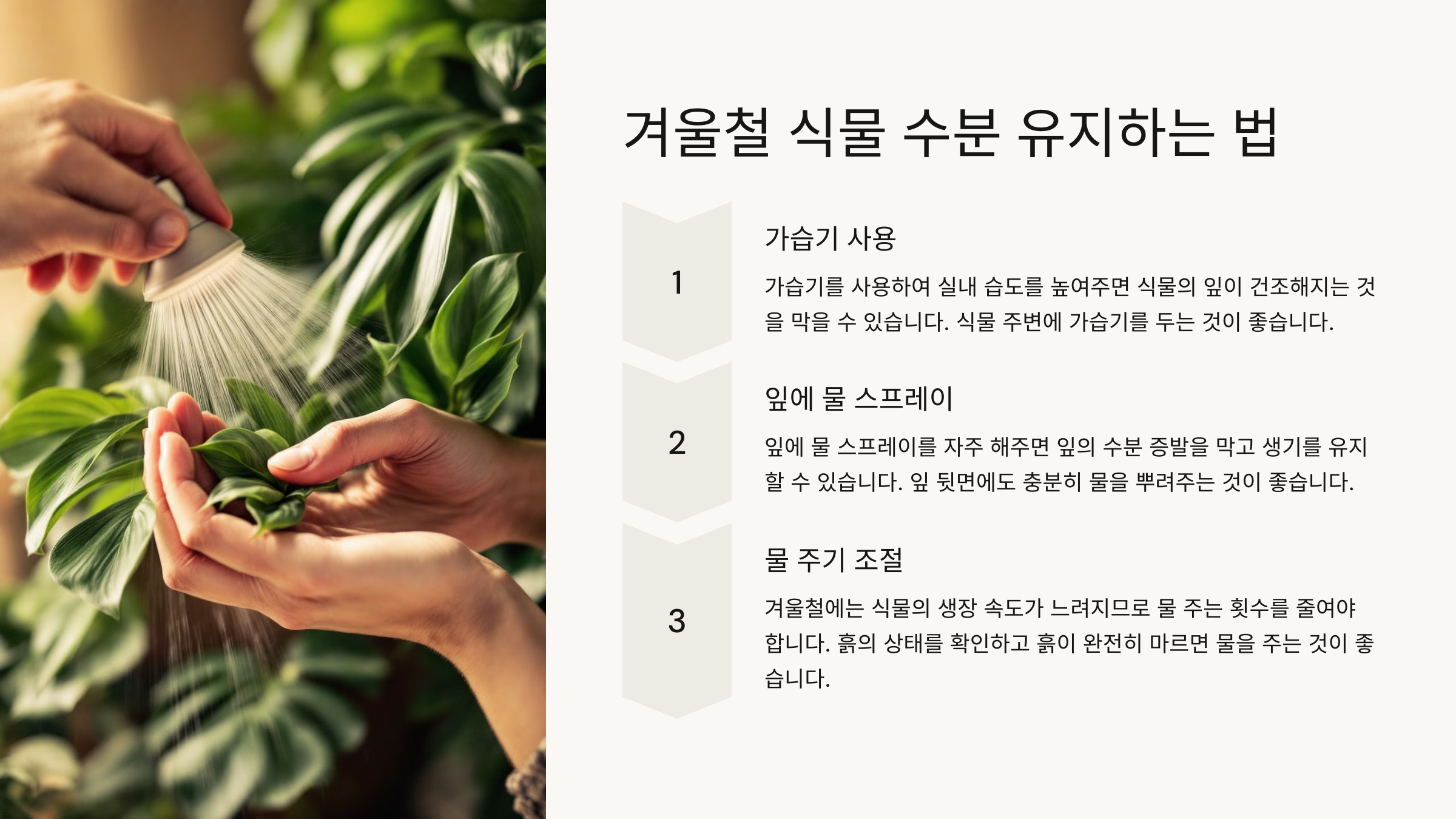 위 방법들을 활용하면 겨울철에도 식물이 충분한 수분을 유지할 수 있어요! 😊