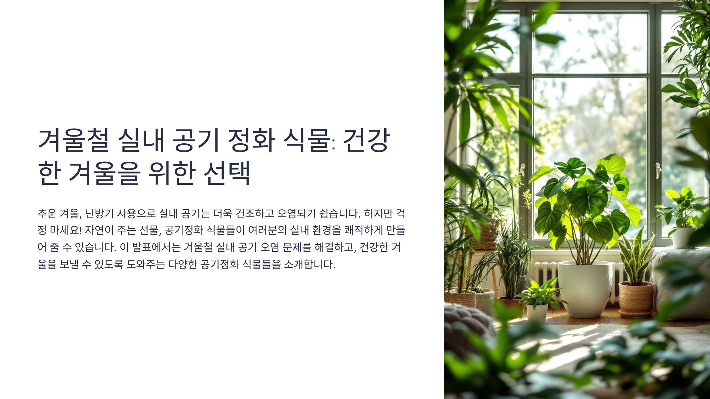 이 식물들은 겨울철 실내 환경을 보다 쾌적하게 만들며, 건강한 공기를 유지하는 데 도움을 줄 수 있어요.