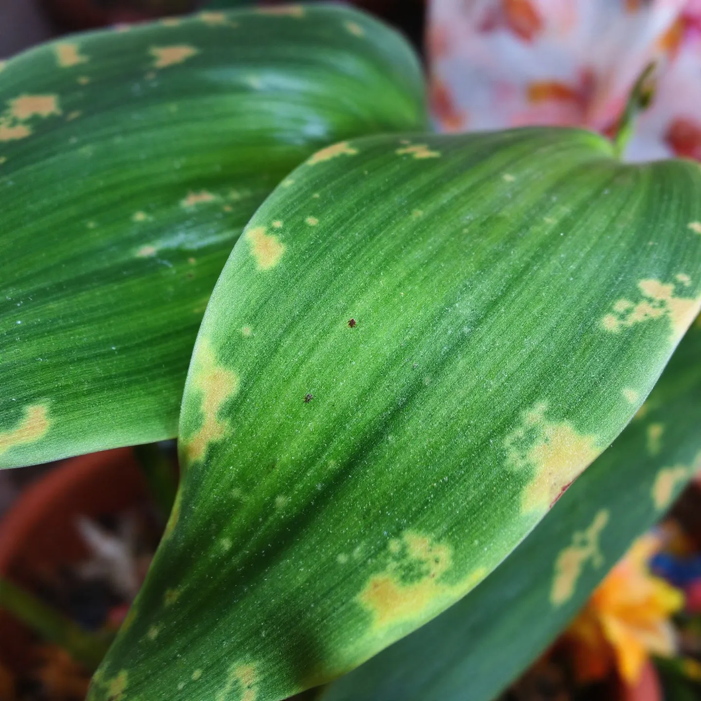 🐜 응애 - 작은 붉은 점처럼 보이며 잎을 갉아먹어요. 발견 즉시 식물용 살충제를 뿌리거나 잎을 닦아 주세요.