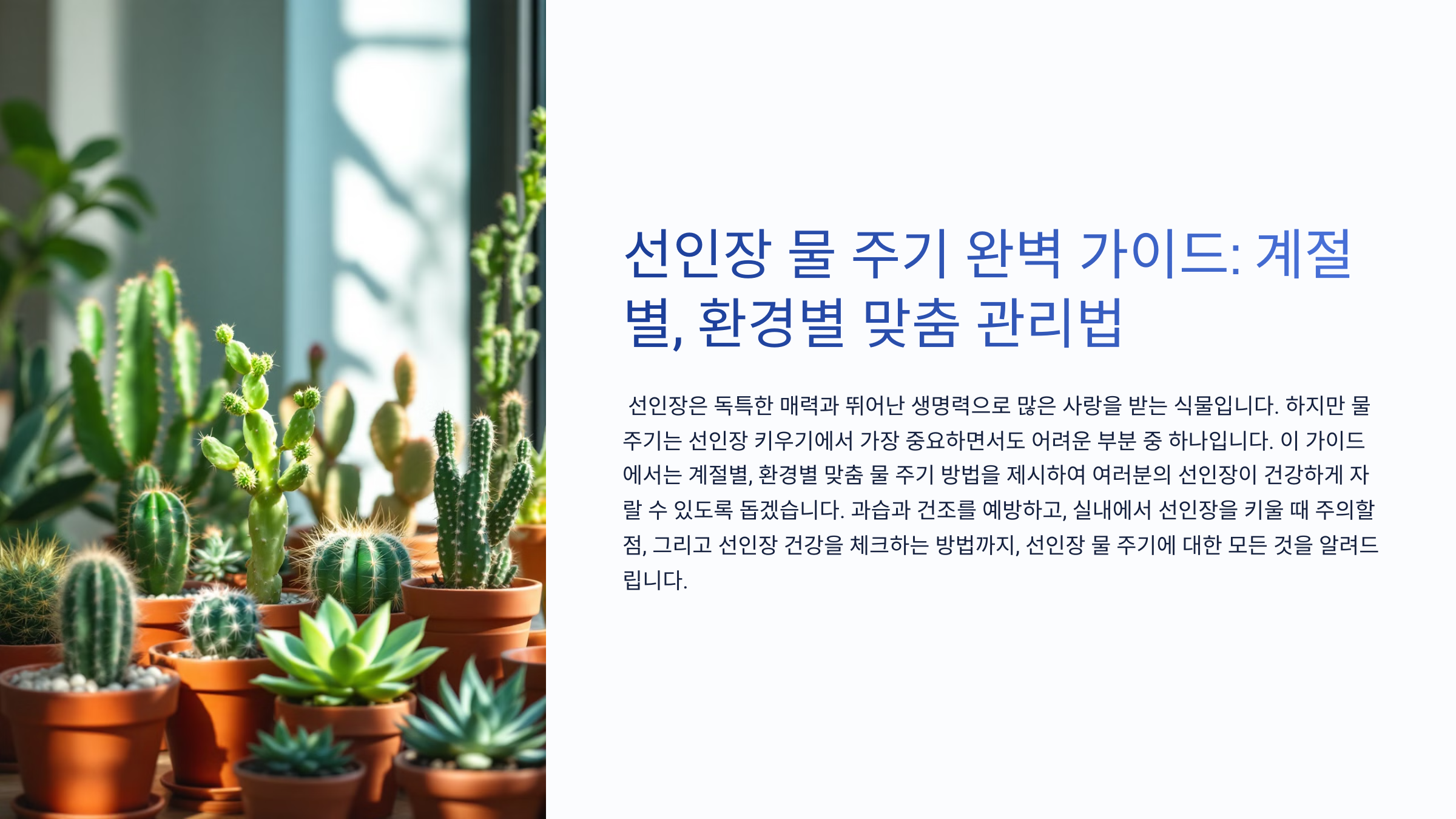 오늘은 **선인장 물 주는 정확한 방법과 실수를 피하는 법**을 알려드릴게요! 🚀