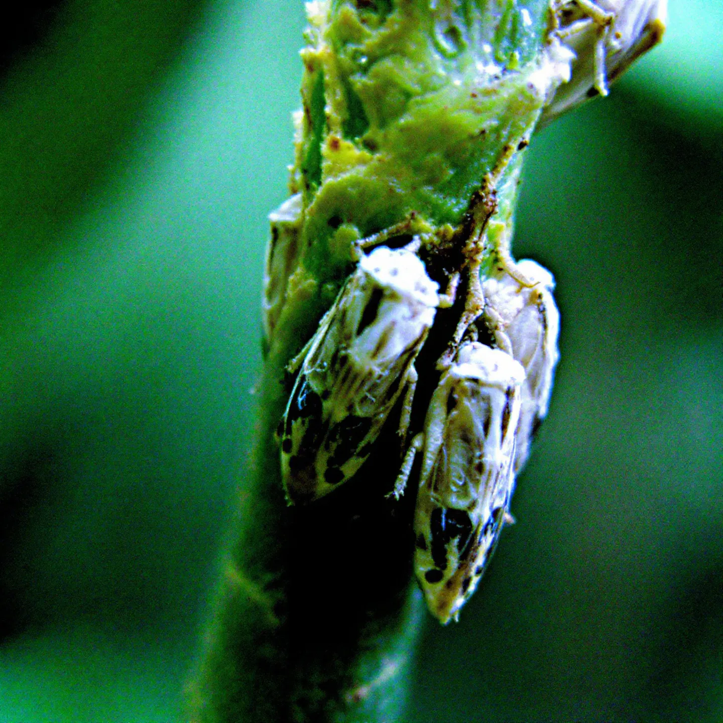 🔍 진딧물 (Aphid) 잎과 줄기에 몰려 수액을 빨아먹어요. 배설물(꿀물)이 곰팡이성 병해(그을음병)를 유발할 수도 있어요. 보통 녹색, 검은색, 노란색 등 다양한 색을 띠며, 번식 속도가 굉장히 빨라요.