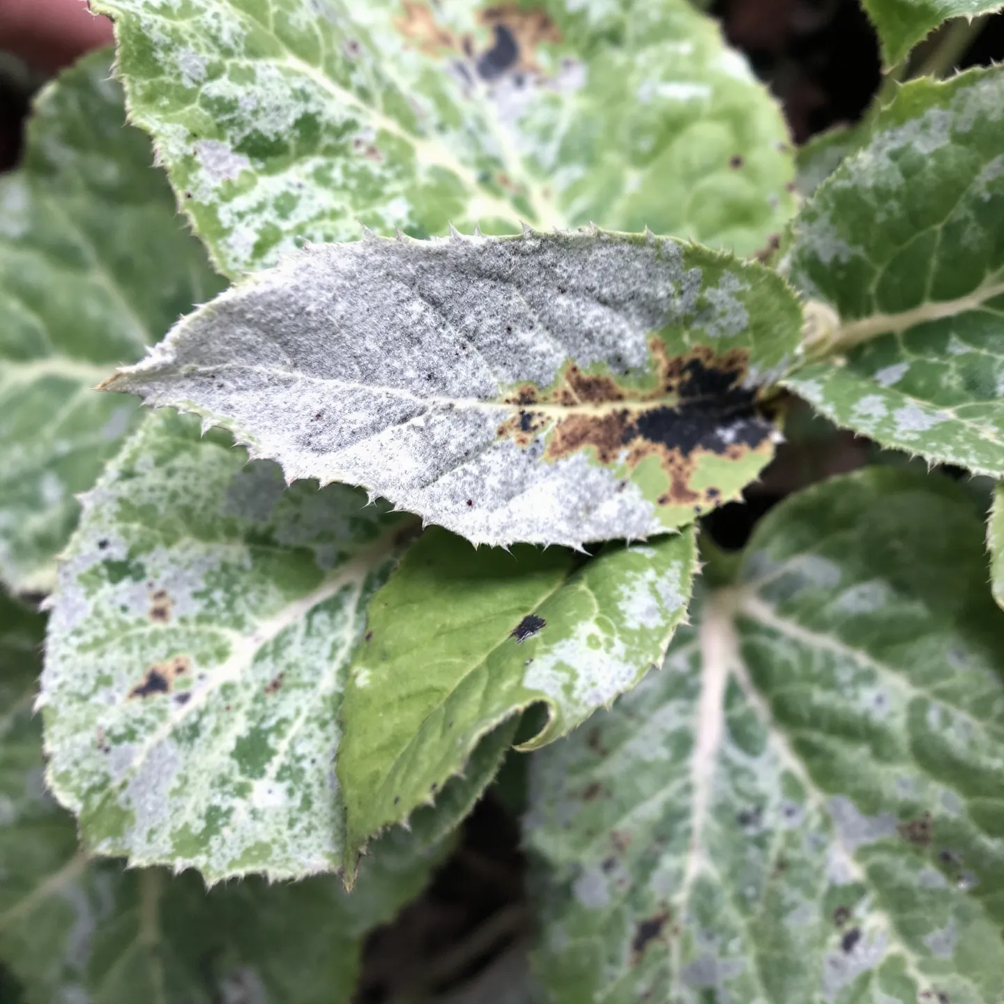 ⚫ 검은 반점이 나타날 때 잎에 검은 반점이 생긴다면 그을음병일 가능성이 커요. 진딧물이나 깍지벌레가 분비한 꿀물이 원인이 되어 곰팡이가 번식하면서 검게 변하는 거예요.