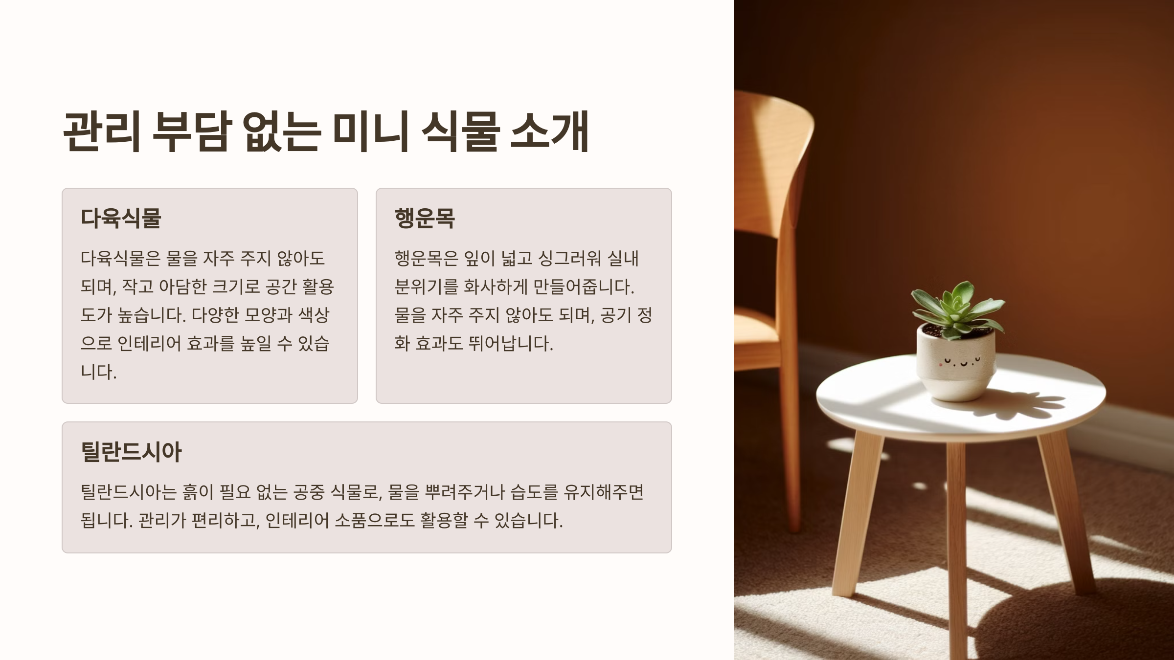 관리 부담 없는 미니 식물 소개