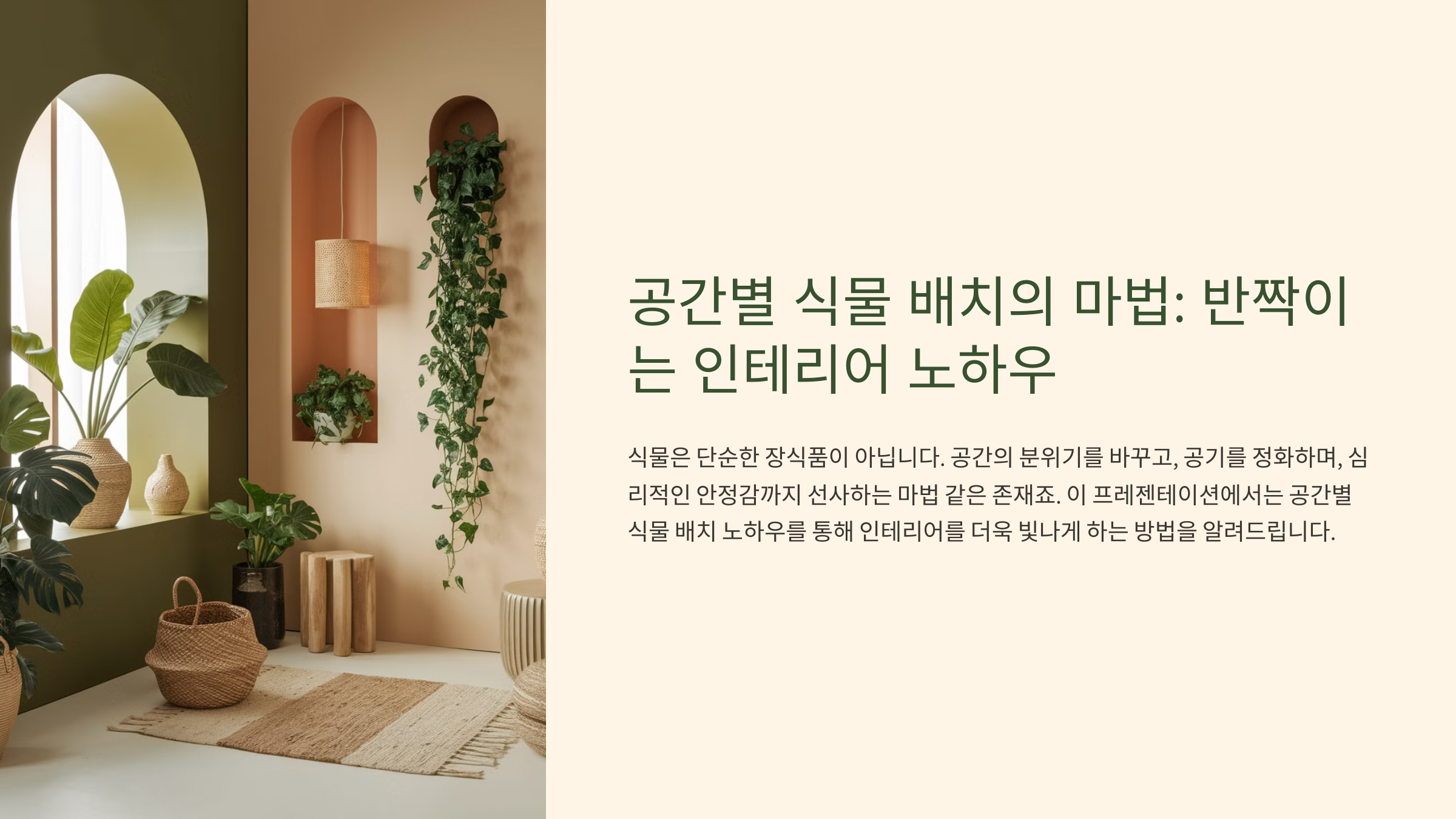 집 안이나 사무실에 초록 식물이 있으면 공간이 한층 더 따뜻해지고 편안해져요. 🌱 하지만 어떤 식물을 어떻게 배치해야 할지 고민되죠? 저도 처음엔 작은 화분 하나로 시작했는데, 식물들이 점점 늘어나면서 인테리어가 완성되는 기분이 들더라고요! 😊