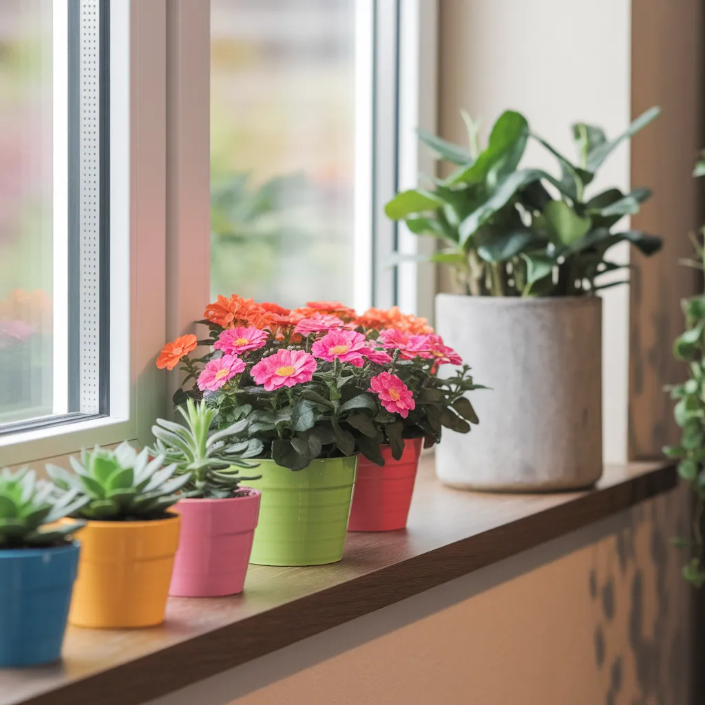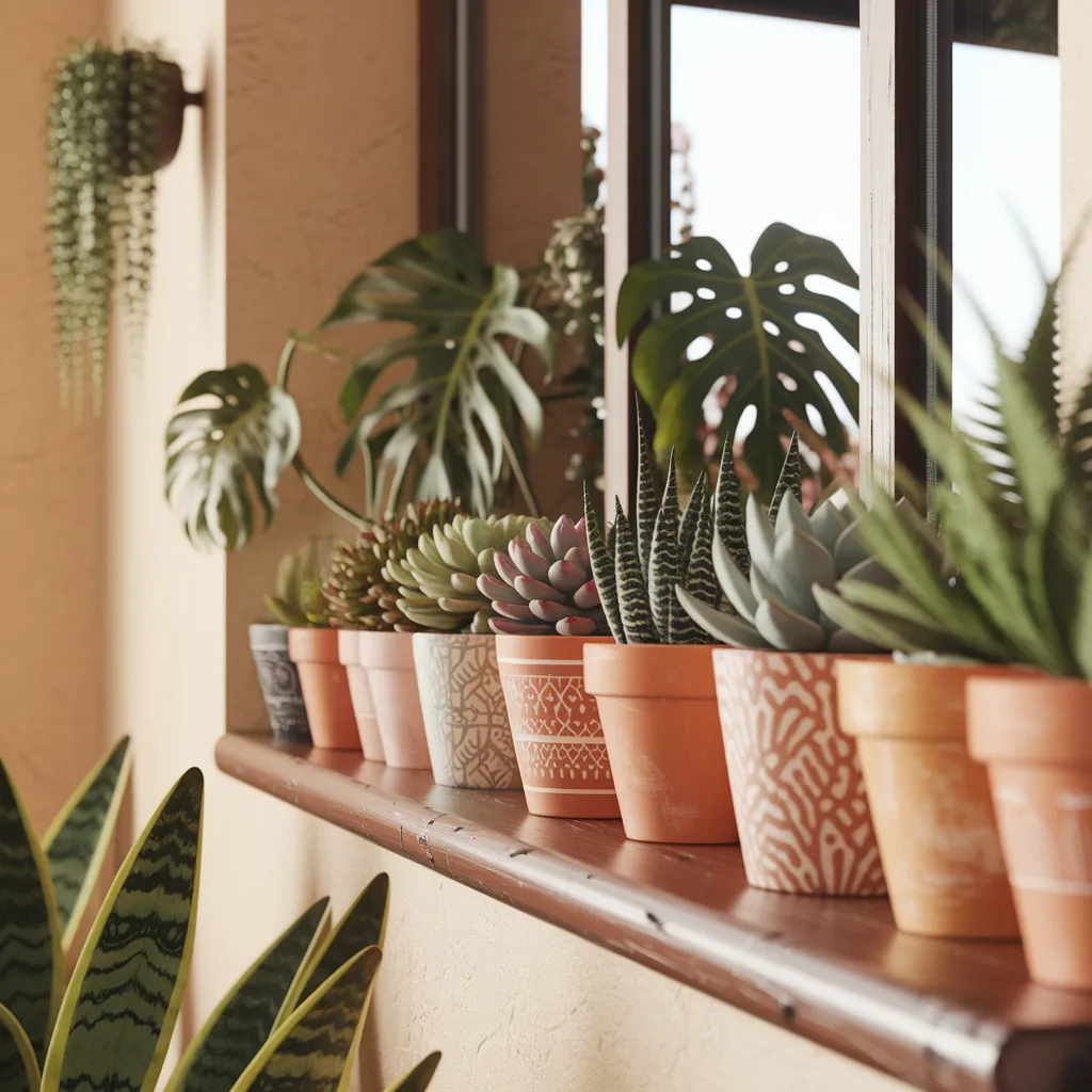 A3. 미니 선인장, 다육이, 틸란드시아, 칼랑코에 같은 작은 화분이 좁은 공간에 잘 어울려요. 🪴 작은 공간에서도 큰 변화를 느낄 수 있답니다.