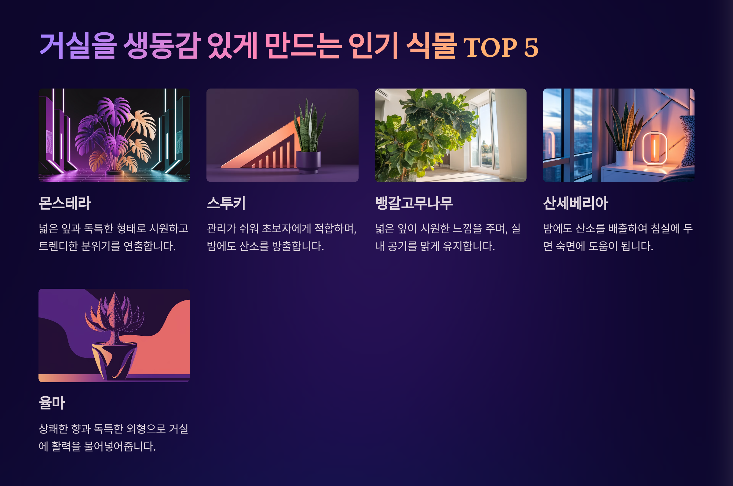 플랜테리어는 단순한 장식 이상의 효과를 가져다줘요. 공기 정화, 심리적 안정, 자연 가습 효과까지 누릴 수 있답니다. 식물 하나만 추가해도 공간 분위기가 확 달라지는 걸 직접 느껴보세요! 🪴💚