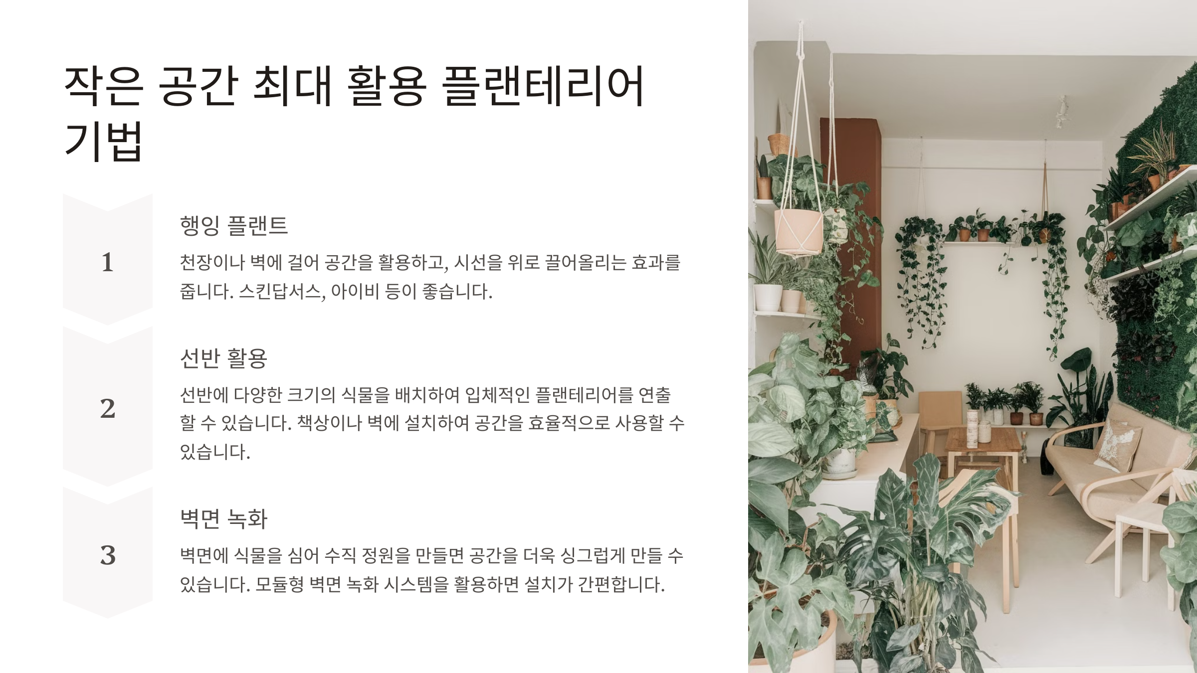 작은 공간에서도 **효율적으로 플랜테리어를 즐길 수 있어요!** 🌿🏡